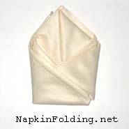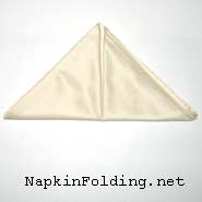 1. Fold the bottom corner of the napkin up to the top corner to form a triangle.