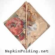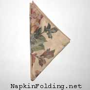 1. Fold the bottom corner of the napkin up to the top corner to form a triangle.