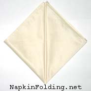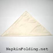 1. Fold the bottom corner of the napkin up to the top corner to form a triangle.